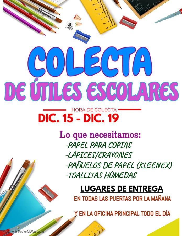 SUPPLIES DRIVE/COLECTA DE UTILES ESCOLARES